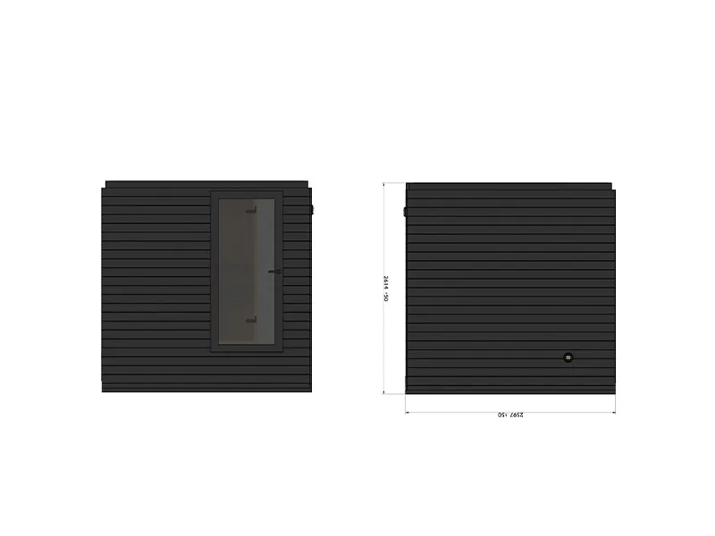 Die Sauna wird vollständig vormontiert geliefert und ist komplett für die Aufstellung am Zielort vorbereitet.